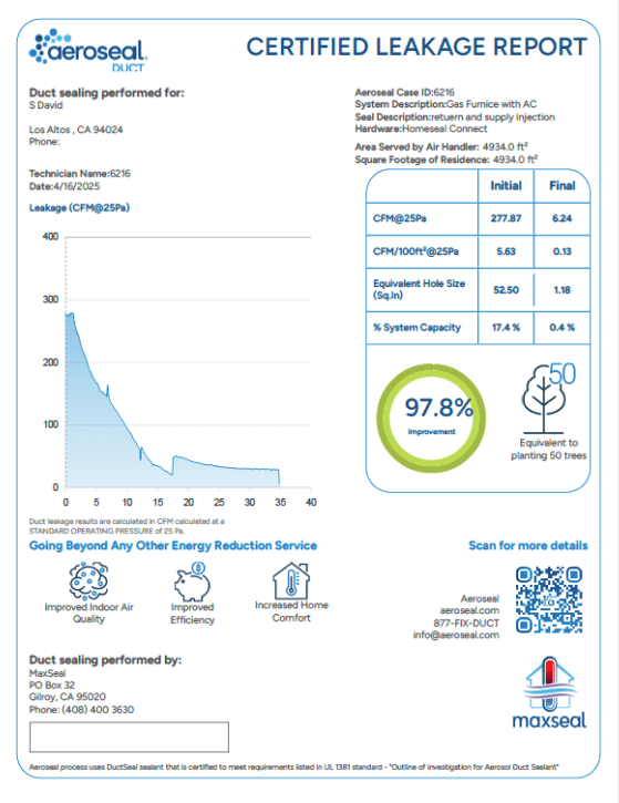 With MaxSeal’s data-first approach and patented Aeroseal technology, we measure, seal, and prove results—so you enjoy consistent comfort, lower bills, and healthier air.